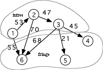 2. Fringe vertices--those not in the tree, but adjacent to some vertex that is.