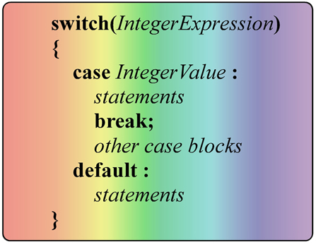 just an integer variable) in parentheses. Then enclosed in braces will be any number of