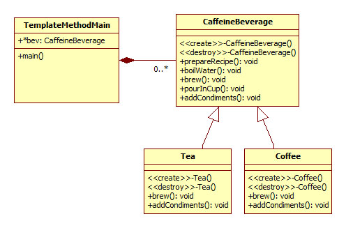 | GoF Statement: | Defines the skeleton of an algorithm in a method, deferring some steps to subclasses. Template Method lets sub-classes redefine certain steps of an algorithm without changing the algorithm’s structure. |